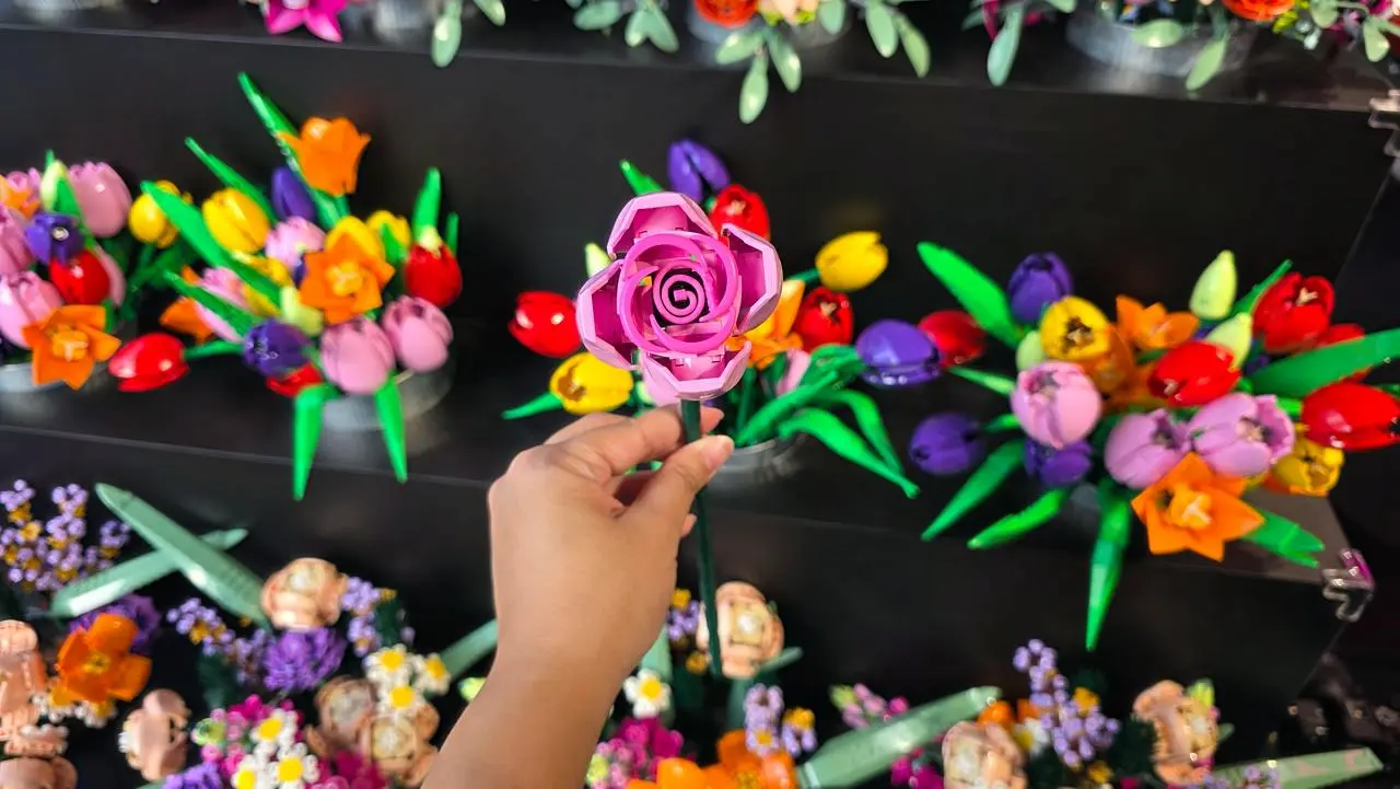 Beyond the Free DIY LEGO Rose, the Bloom Bar showcases the full LEGO Botanicals range, like Bouquet of Roses or Wildflower Bouquet sets. These intricate kits appeal to collectors, with prices starting affordably for impulse buys. The pop-up’s immersive design, resembling a blooming garden stall, draws crowds for photos and inspiration.