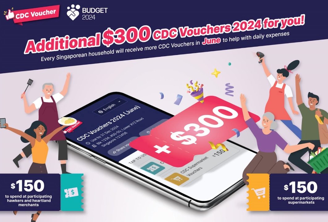On 25 June 2024, eligible Singaporean households received S$300 in CDC Vouchers. This distribution is the first part of a two-tranche disbursement, with the next set of vouchers scheduled for January 2025.
