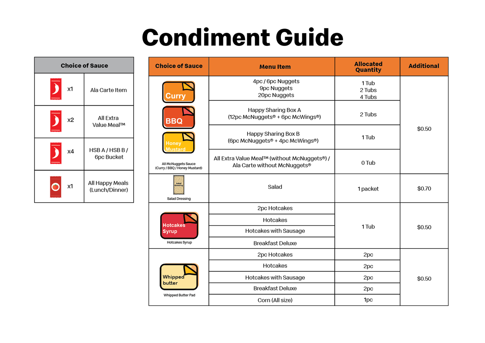 To provide clarity, here’s a summary of the charges that will apply to extra sauces: