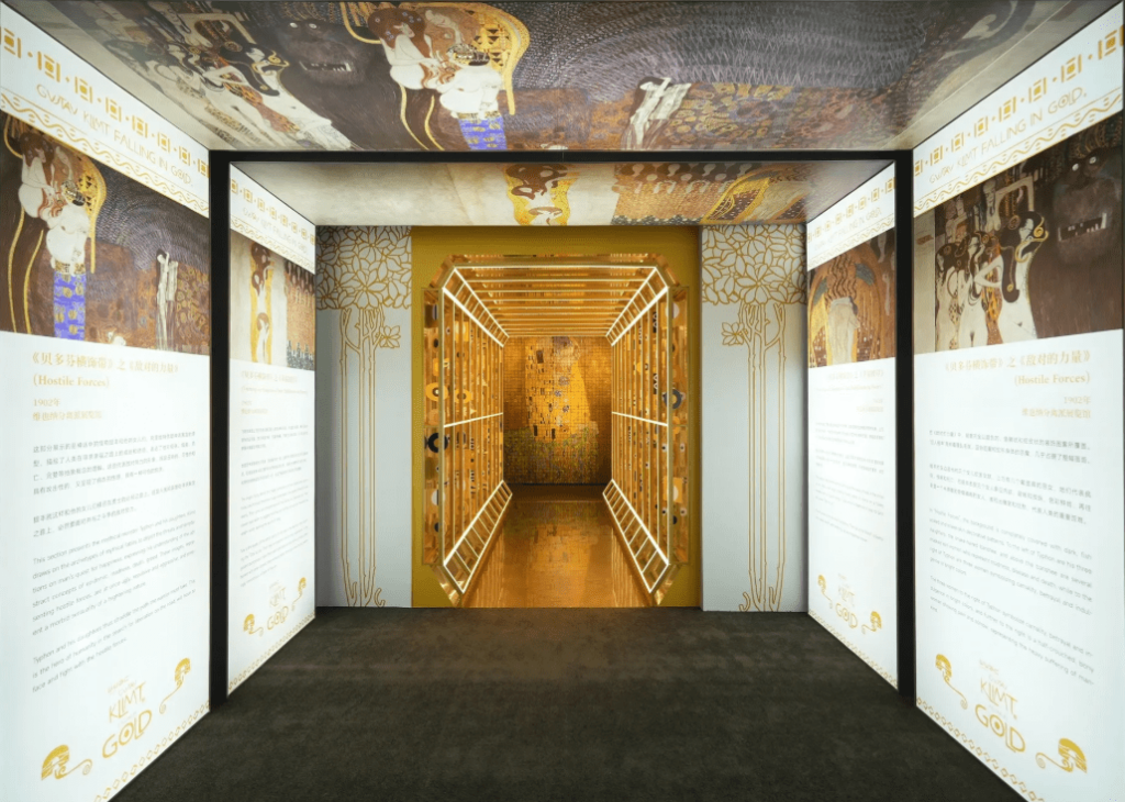 The Gustav Klimt: Falling in Gold exhibition spans an impressive area of 1,460 square metres, featuring seven distinct rooms designed to transport visitors into Klimt’s artistic universe. Each room showcases different aspects of his work, allowing guests to explore his themes, techniques, and inspirations.