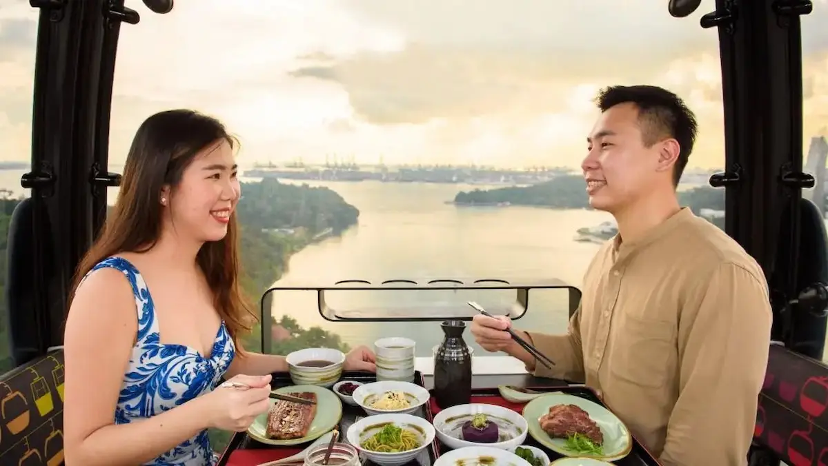 For couples seeking privacy above the city, the Cable Car Sky Dining experience allows you to enjoy a high-end meal while gliding between Mount Faber and Sentosa in a private cabin. This classic Singaporean experience offers total seclusion and unique perspectives of the harbour.